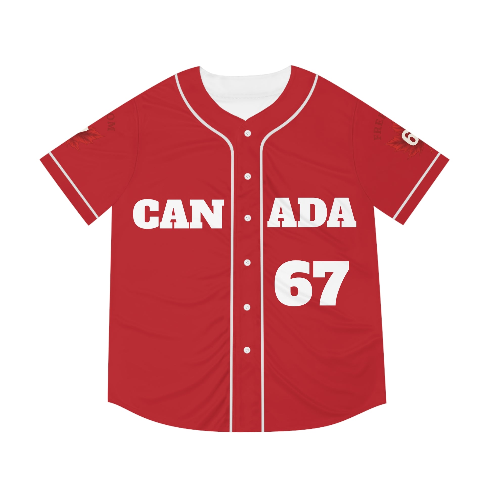 Men's Red Baseball Canada Jersey - Option of White Piping & Buttons or Black Piping & Buttons