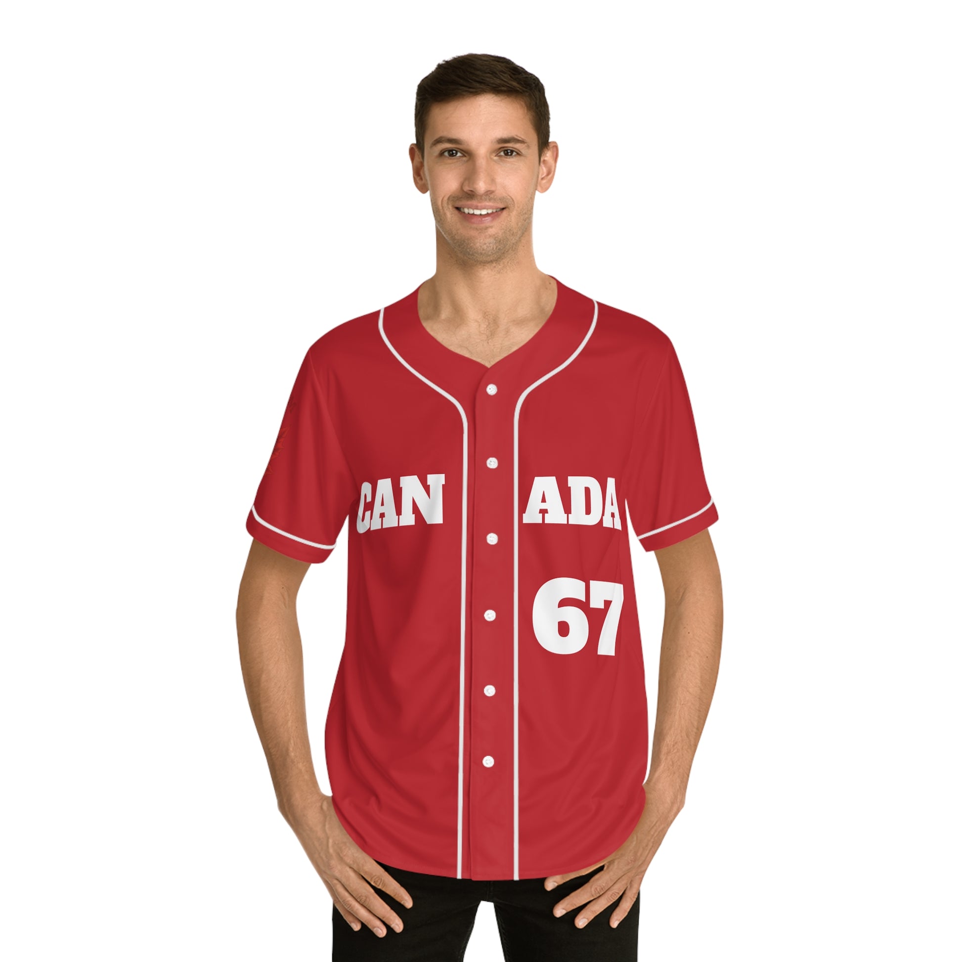 Men's Red Baseball Canada Jersey - Option of White Piping & Buttons or Black Piping & Buttons